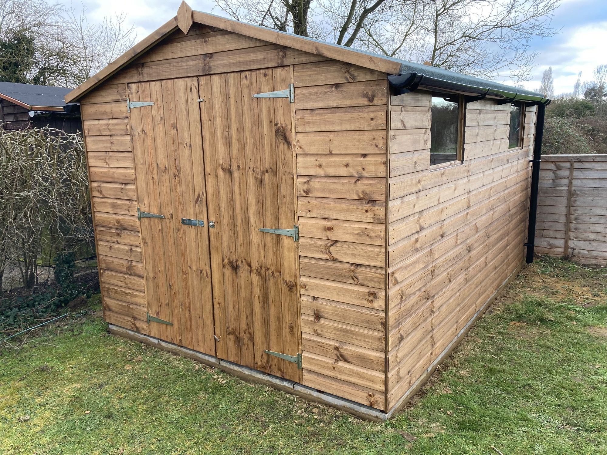 ** All sawn timber is pressure treated, as standard, with an oil-based treatment available on shiplap cladded sheds; we can also treat the product in customer-supplied choice of treatment for a nominal fee.